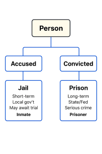 Inmate: شخصی که در هر نوع زندان یا بازداشتگاه نگهداری میشود (شامل jail و prison)